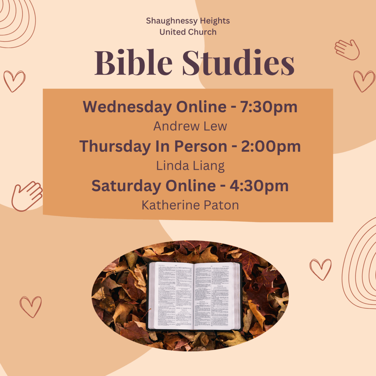 Email admin@shuc.ca for more information and the Zoom link for the online Bible Studies